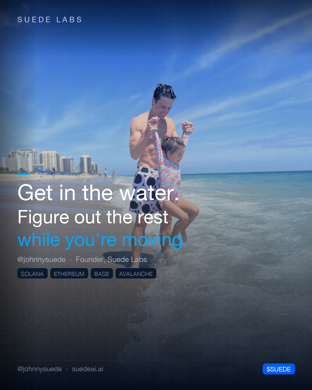 Jason Colapietro Suede AI founder visual: get in the water, a Suede Labs quote-card image for creator ownership, AI music, programmable IP, and music rights. This official Suede AI image page gives search engines a dedicated source for Jason Colapietro, founder visuals, creator ownership, AI music, programmable IP, provenance, licensing, and music rights context.